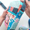 You will receive, 12 pages of step by step instructions with helpful tips and over 60 photos to illustrate the steps and techniques used. I've also included instructions for the patchwork version and how to make your very own handmade strap! This is a measure and cut pattern so the corner shaping template is the only one you'll need.