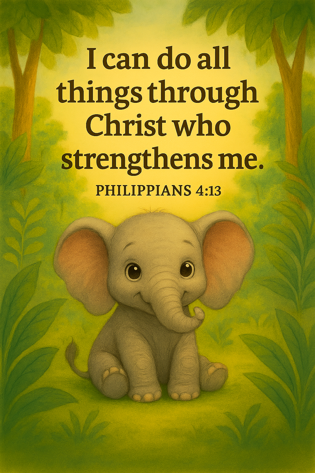 🐘 Strength Through Christ – Baby Elephant Scripture Poster for Children