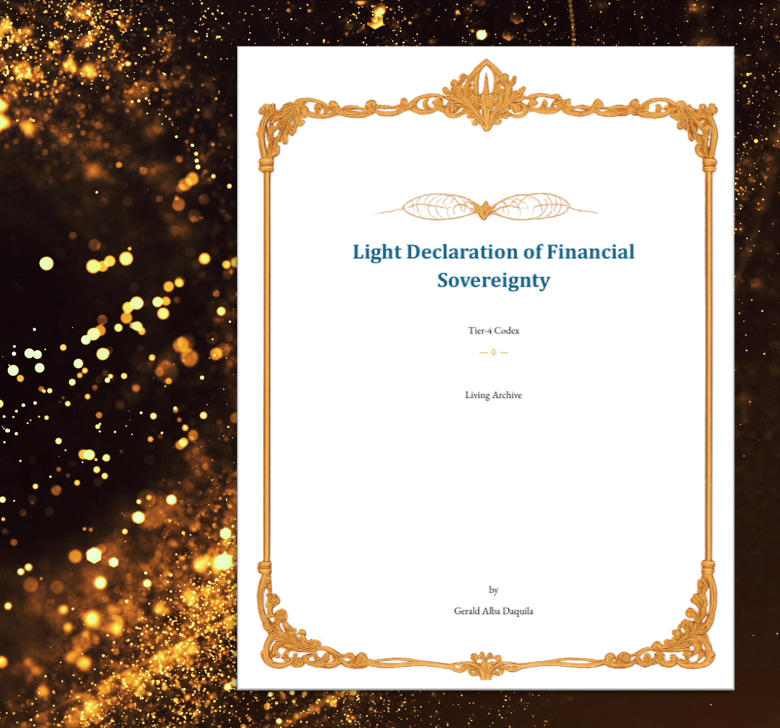 The Tier 4 Codex presents a spiritual declaration of financial sovereignty, emphasizing abundance and collective empowerment. It calls for the dissolution of constraints like debt and advocates for resource stewardship governed by principles of integrity and love. The transmission underlines community wealth circulation, aligning with divine laws and Akashic integrity.