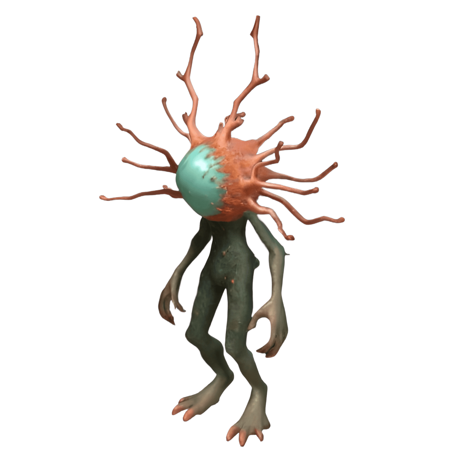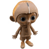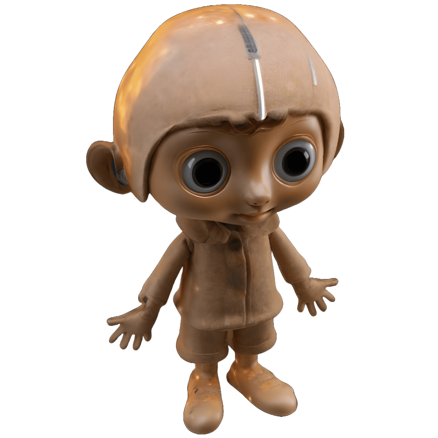 - A cute stylized character with large eyes and a simple brown outfit, perfect for kids' toys or collectibles