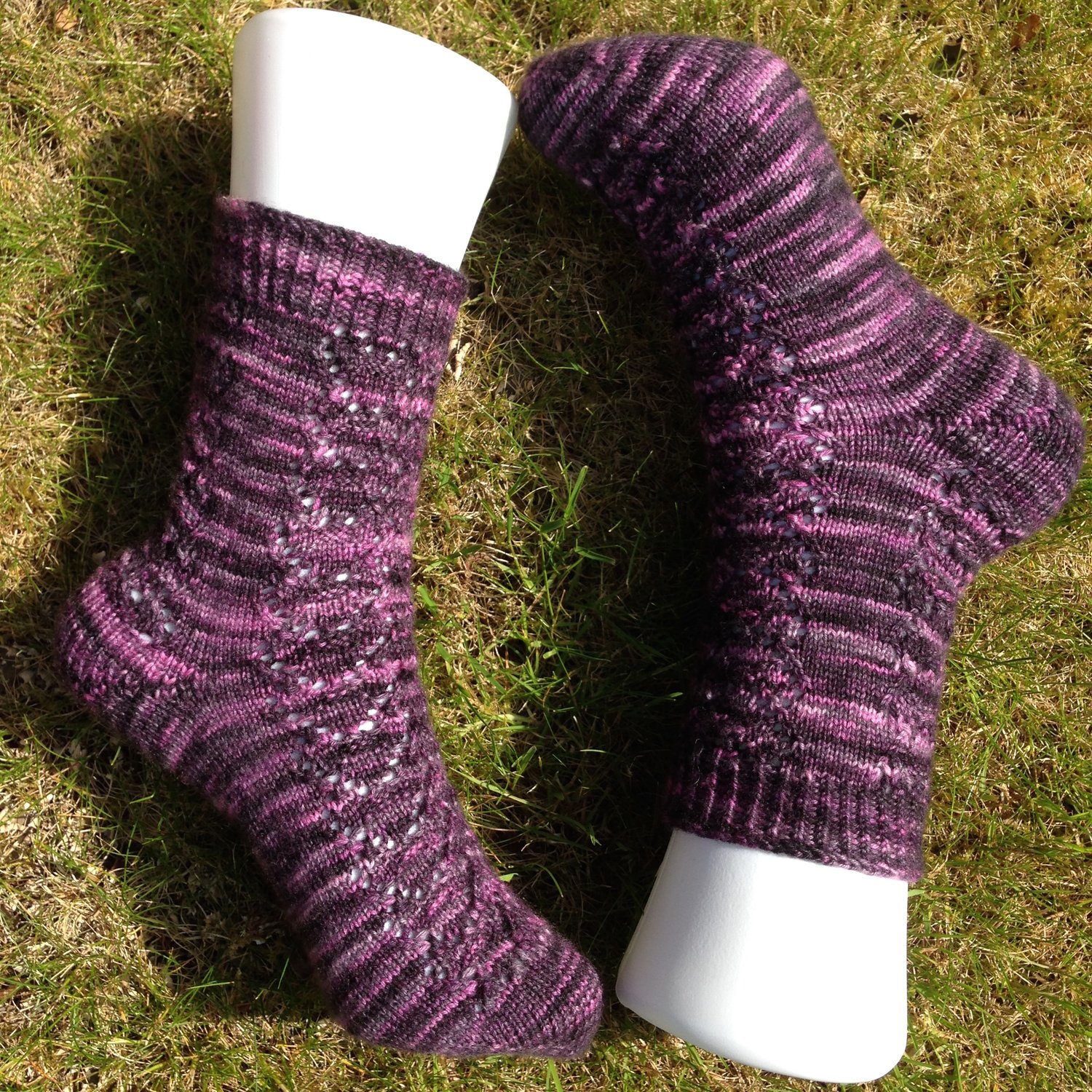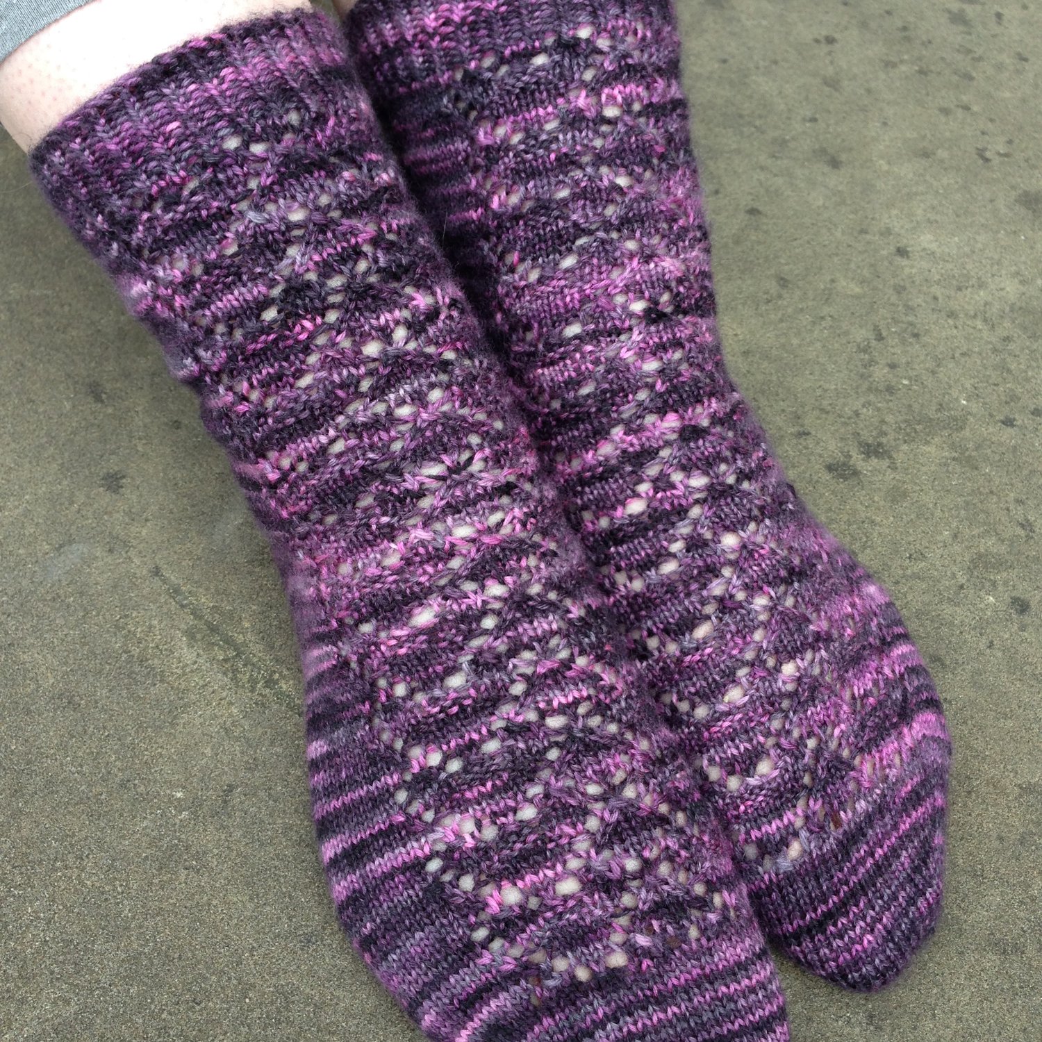 These socks are knit using the magic loop method (although the purchaser could easily adapt it for two circulars or double points).