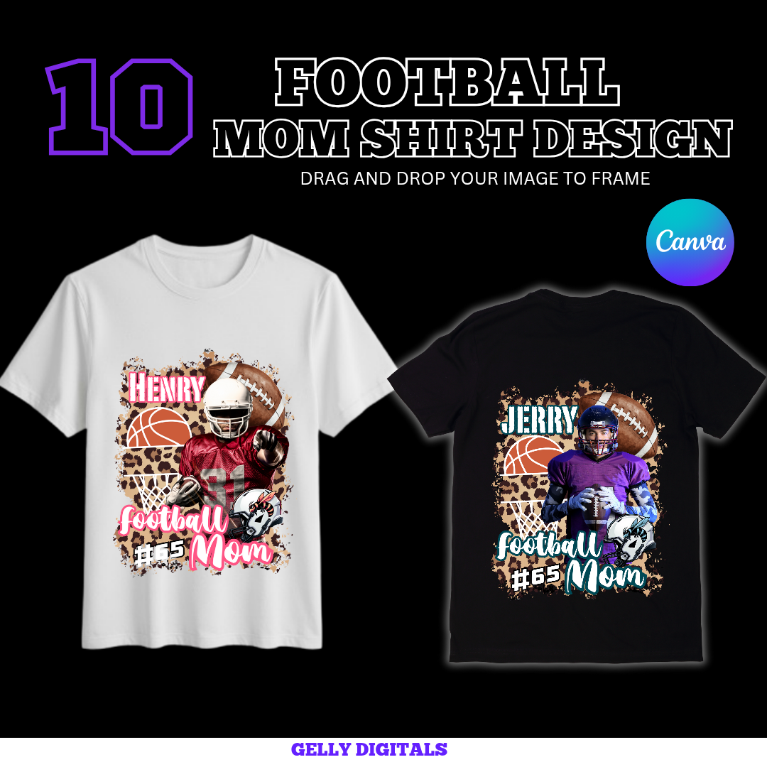 This 10 Football Mom Shirt Design Bundle is fully customizable in Canva – just drag & drop your image and personalize with name & number. Perfect for proud moms cheering from the sidelines! 🙌✨