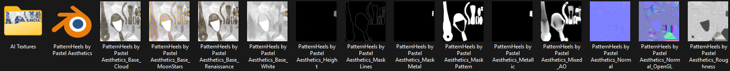 24 Textures (15 Base Colours, Height, Metallic, AO, Normal, Roughness, Masks)