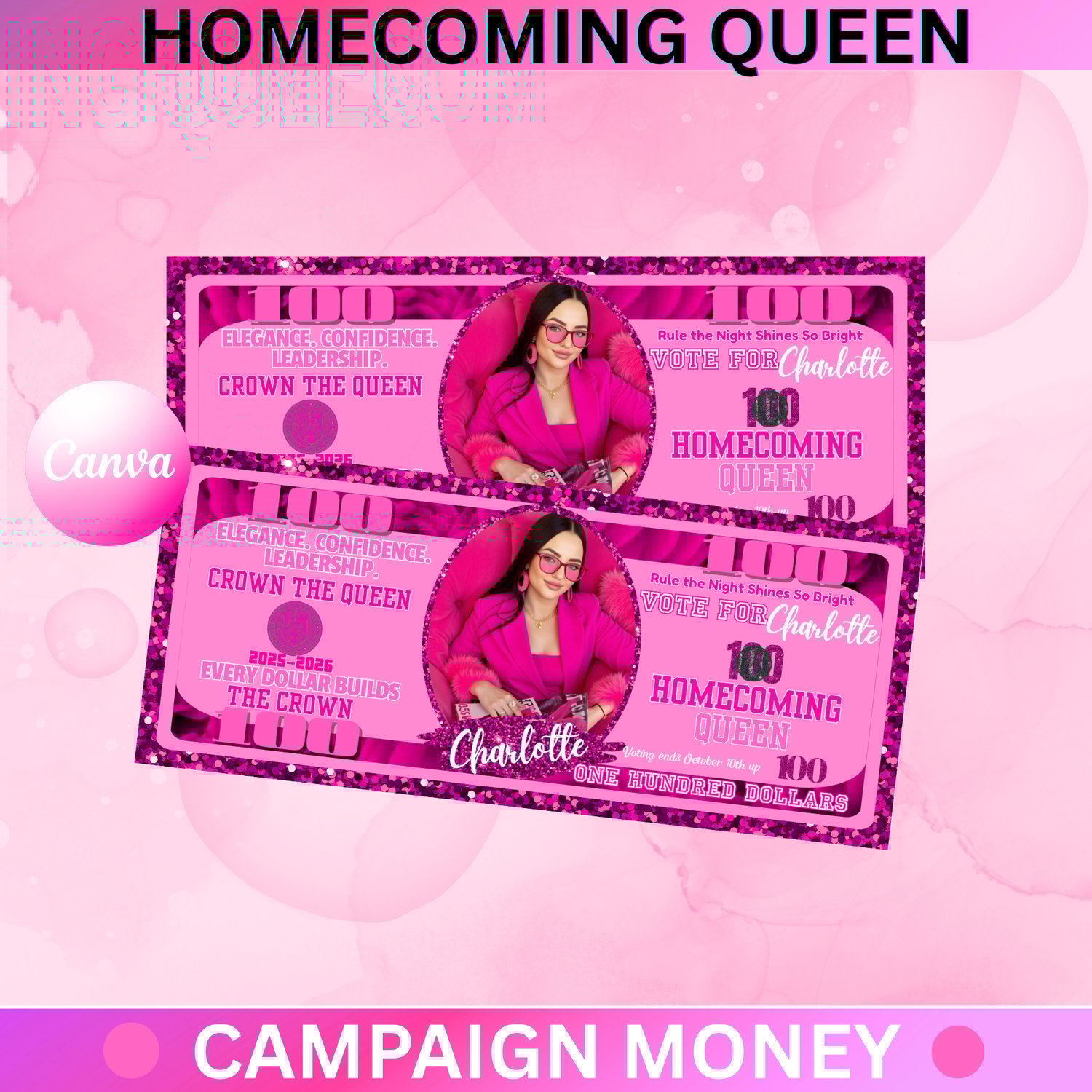 HOMECOMING CAMPAIGN MONEY | EDITABLE | EASY TO USE