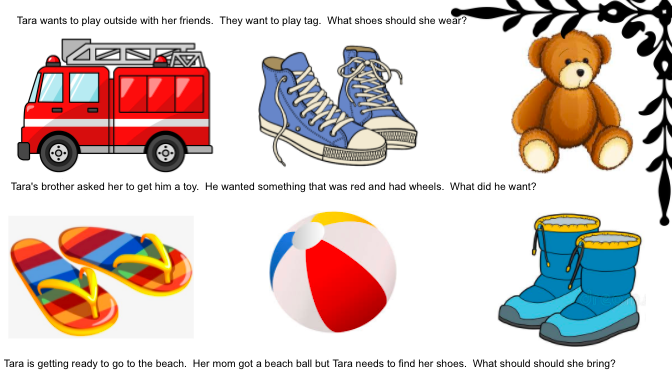 Includes aspects of listening, speaking, and reading. Could very easily add on writing questions by utilizing the pictures provided.