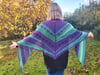 Pentire Point is worked from the top down with short rows to create a shallow triangle (link to tutorial included). Featuring a simple lace pattern, eyelet border and a picot edging, this shawl is large and cozy. Perfect for chilly days.