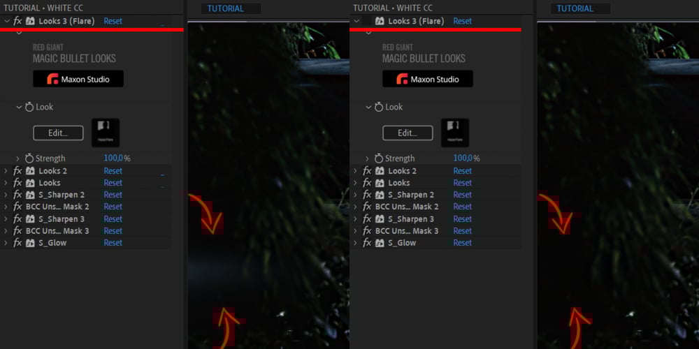 If the blue light streaks (flares) interfere, you can easily disable them by turning off Looks 3 (Flare) in the Effect Controls.