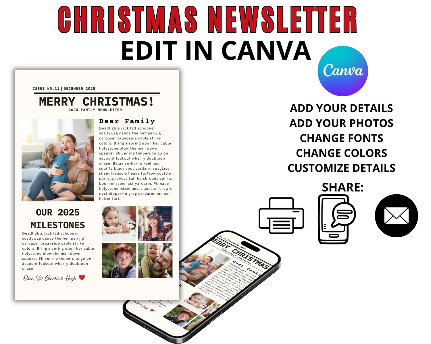 Christmas Newsletter Templates -Editable