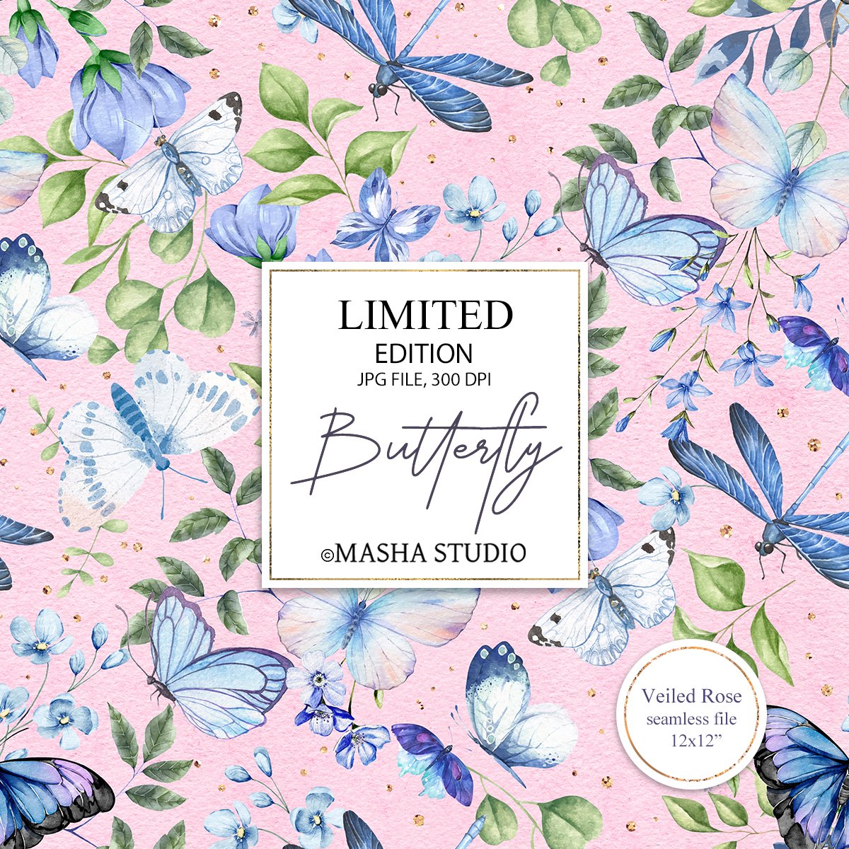 Hand Drawn Veiled Pink Butterfly Seamless Digital Paper