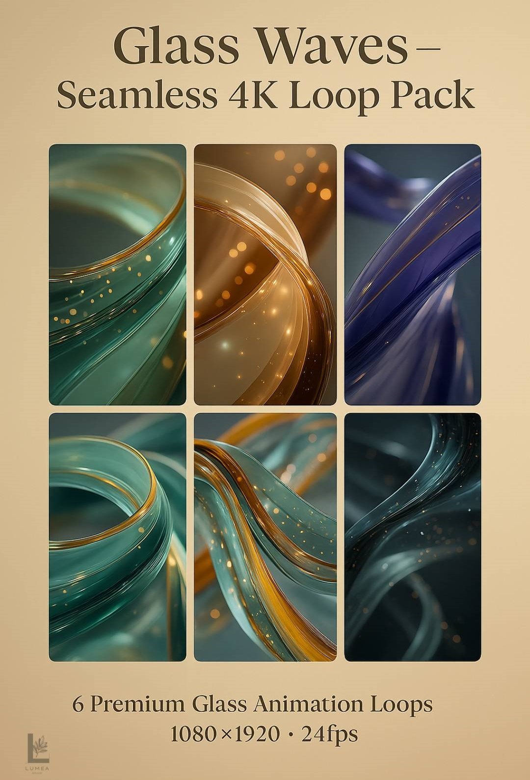 Transform your vertical content with GlassWaves – 6 Seamless Vertical Glass Loops (1080×1920).