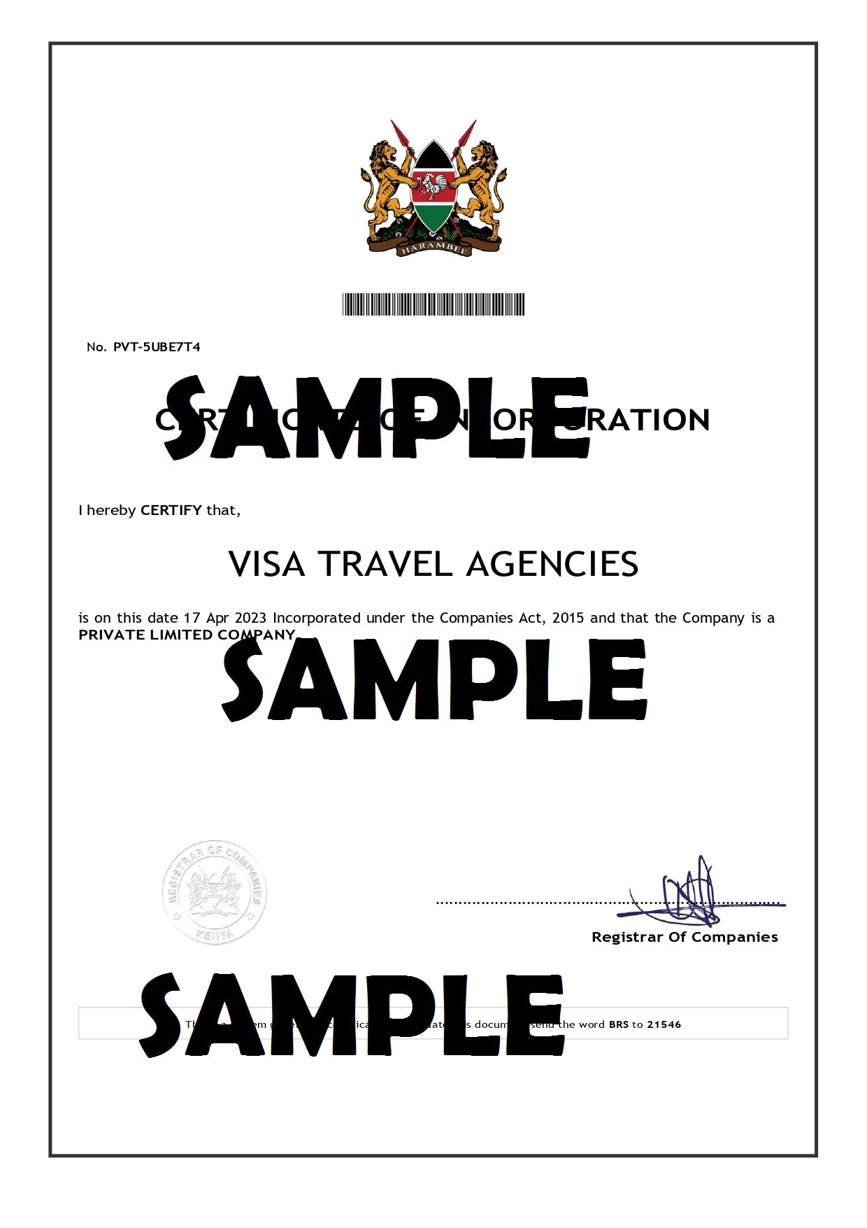 Fully editable Kenya Certificate of Company Incorporation in doc (word) format. Just open the document with word and you are good to go. I am always available for any further help.