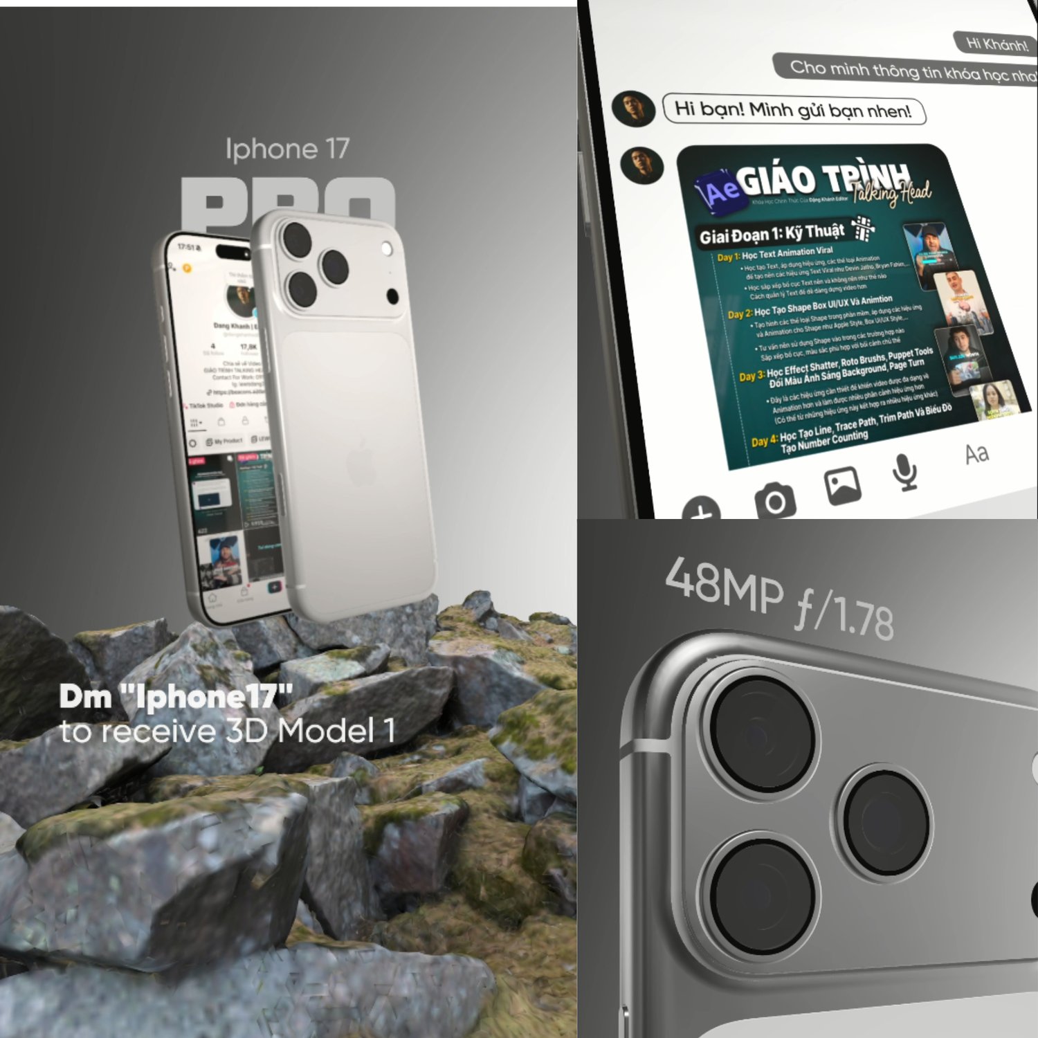 This iPhone 17 Pro Animation Model project includes instructions on using 3D models, creating motion, adjusting phone screen reflections, transitions, and artificial lighting!