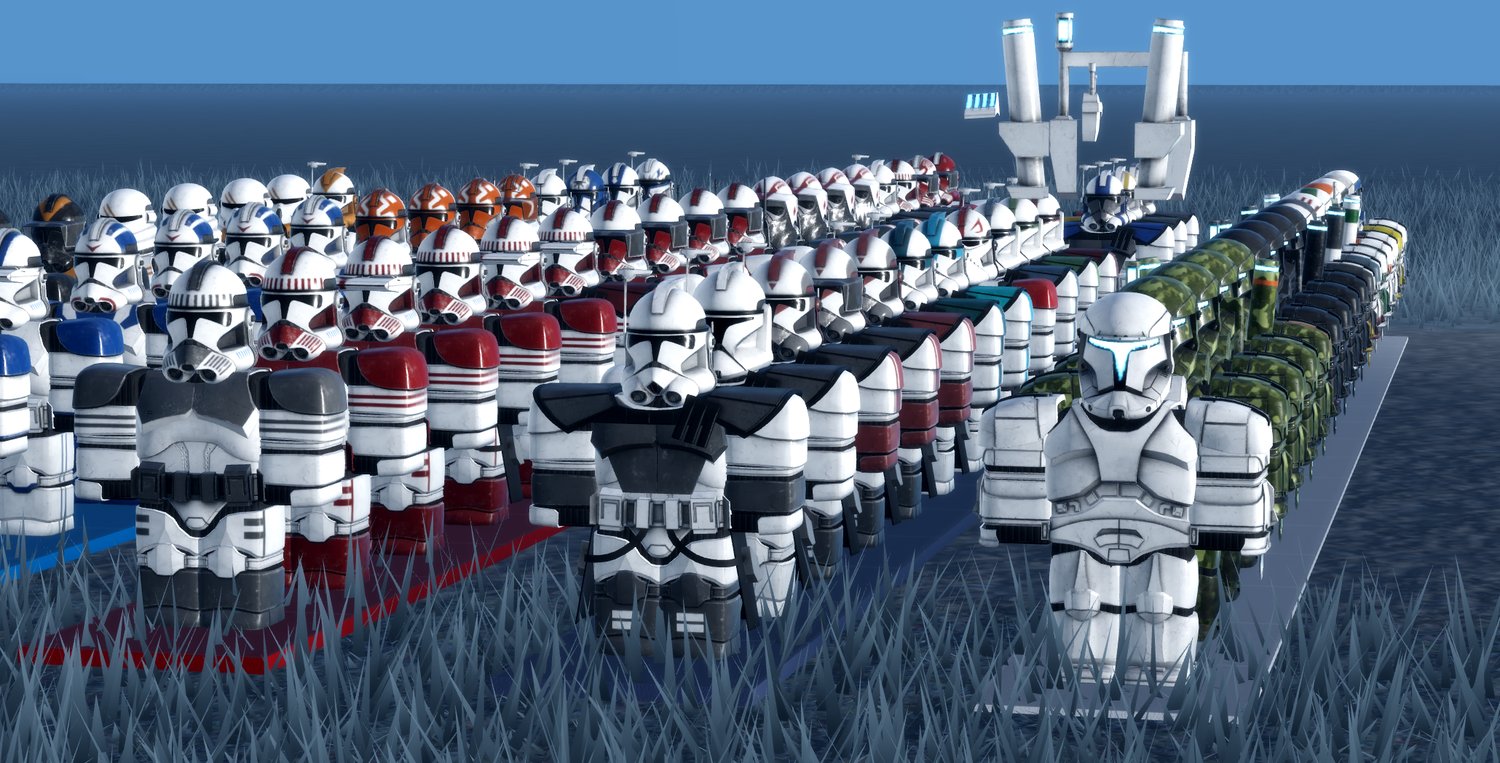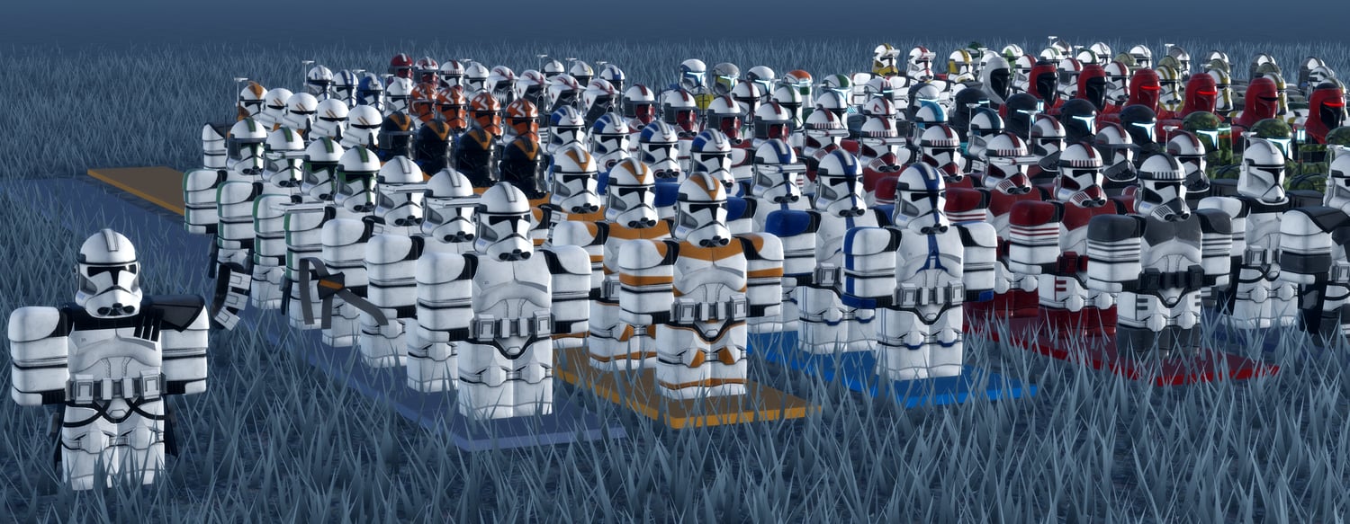 Deploy your forces with this **Phase II Clone Trooper Morph Pack**, featuring a wide range of iconic battalions and specialized units from the later stages of the Clone Wars. Designed with a clean, consistent style and strong visual identity, this pack is perfect for faction-based gameplay, roleplay, and large-scale combat scenarios.