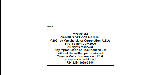 2021 Yamaha YZ250FXM Owners Service Manual Part No. LIT=11626-34-54