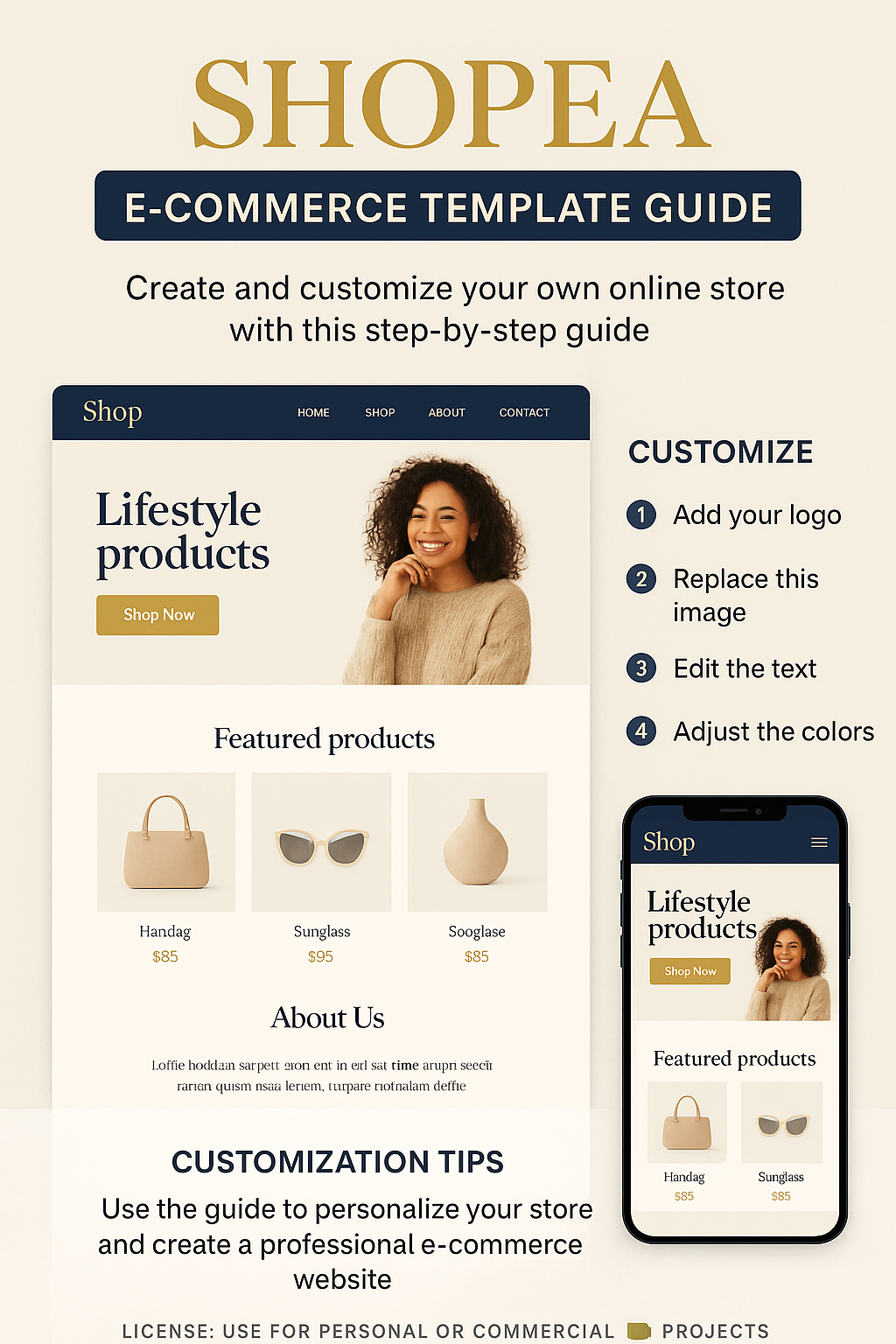 Launch your own lifestyle brand store with ease! This beautifully designed gold and navy guide walks you step-by-step through customizing your e-commerce website — no coding needed. Perfect for entrepreneurs and creatives who want a stylish, professional online store they can personalize and resell.