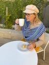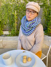 The brioche stitch that is the basis for the Pâte à Choux shoulder cozy is likewise a rich, fluffy, and delightful thing from which many other delightful things are created. It's worked here in two colors that swap out — or syncopate— to create an intriguing pattern and a versatile layering piece that can be styled in a variety of ways.
