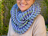 Skills/Techniques: knitting in the round, I-cord cast on (video tutorial), I-cord bind off (video tutorial), brioche knitting (written instructions included), syncopated brioche (written instructions included)