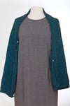 Button this shawl into a shrug or wear it flat. The cuffs are knitted in the beginning and end of the piece, then sleek edges are added to the lengthwise edges of the shawl. The medallions of lace are done in varying multiples and as a central motif. None of this is difficult knitting, but we always like to make it interesting!