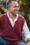 This vest is worked from the bottom up, seamlessly. In the armhole, we divide the fronts and back pieces and work each piece separately to the shoulders. The ribbing in the sleeves and the button band are worked last over picked up stitches along the edges of the garment.