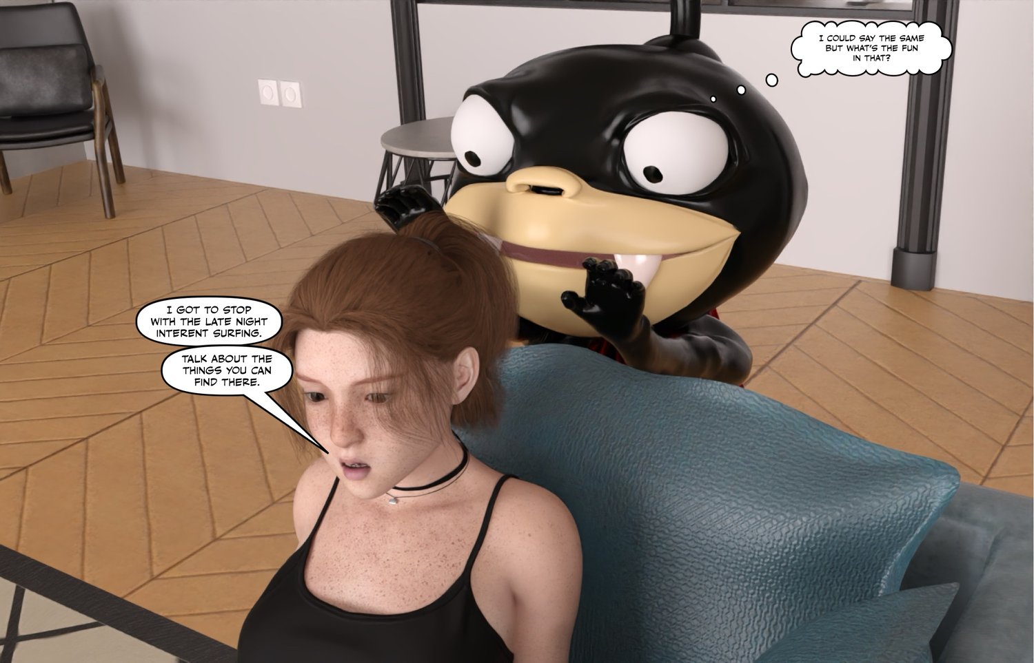 Shaking it off, she realizes she has things to do and has to get ready. Little does she knows that Nibbler was close by watching her every move waiting to strike. Soon the opportunity presented itself and Nibbler took action.