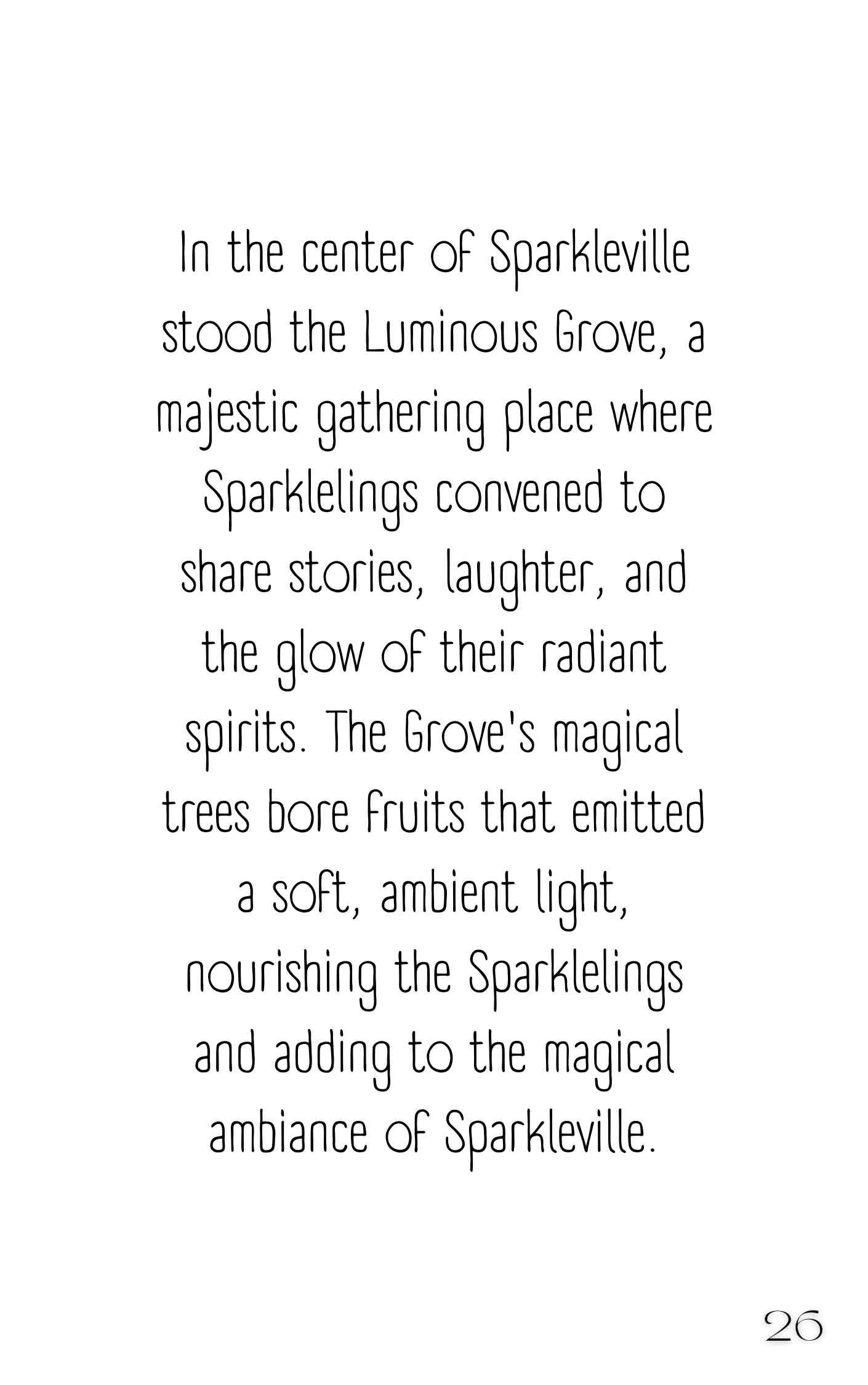 Sparkle is a brave girl, a being of brilliant light that never fades, even in the deepest darkness. With her glow, she inspires others to discover the spark of kindness and courage within themselves.