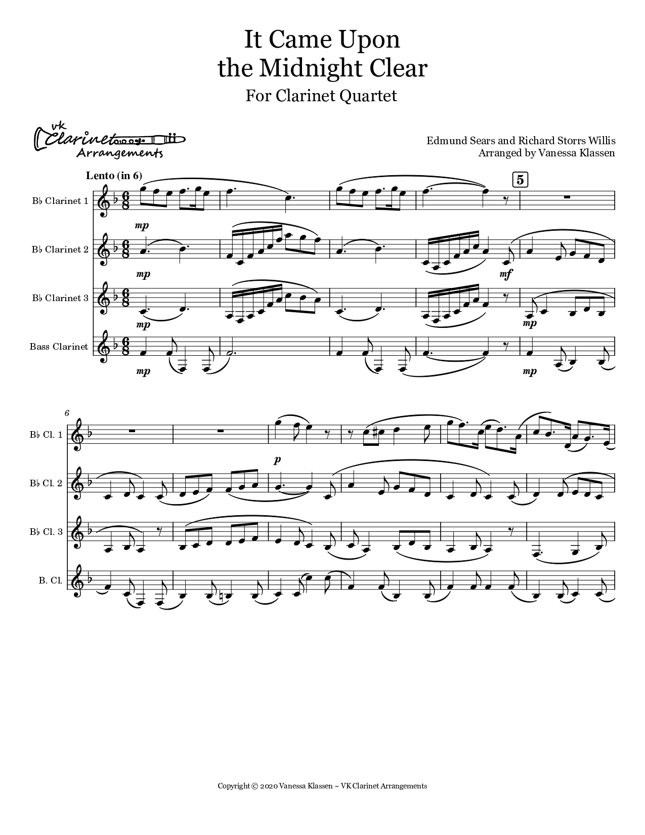 It Came Upon the Midnight Clear for Clarinet Quartet