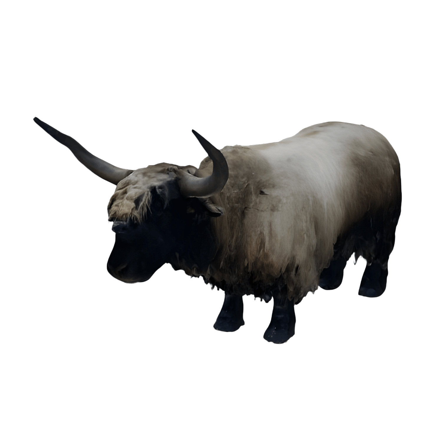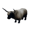 - Image 1 shows a realistic black and white highland cattle with detailed fur texturing