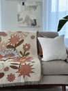 Infuse your home with a touch of vintage charm and vibrant style with our "Groovy Garden" Woven Throw Blanket. This piece features a captivating retro-inspired floral design, showcasing bold blooms and geometric accents in warm, inviting tones.