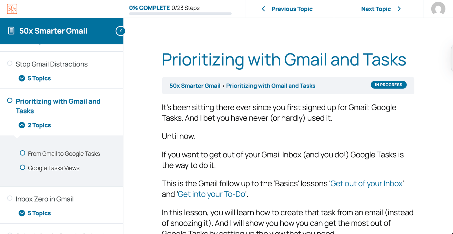 With 50x Smarter for Gmail you will learn how to optimize your Gmail and integrate it with Google Tasks and Google Calendar to increase focus and productivity.