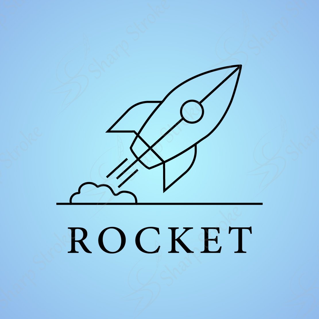 A scalable vector illustration of a rocket taking off, leaving a trail of smoke against a gradient blue background. Ideal for dynamic and futuristic designs.