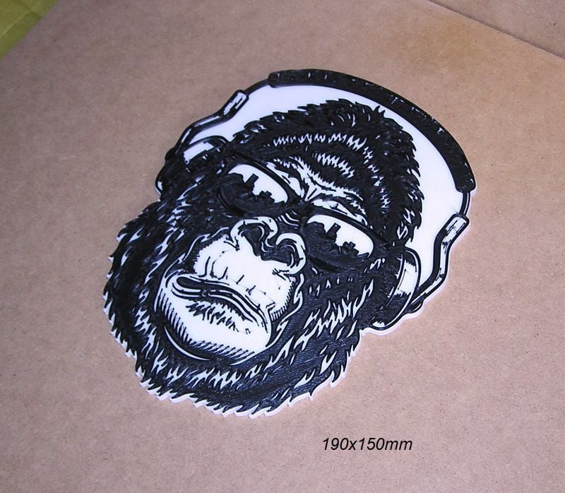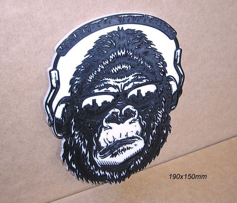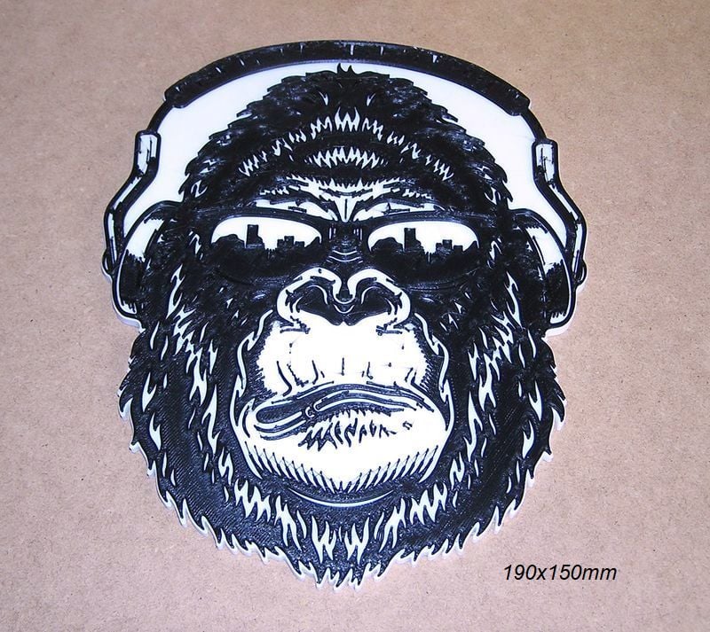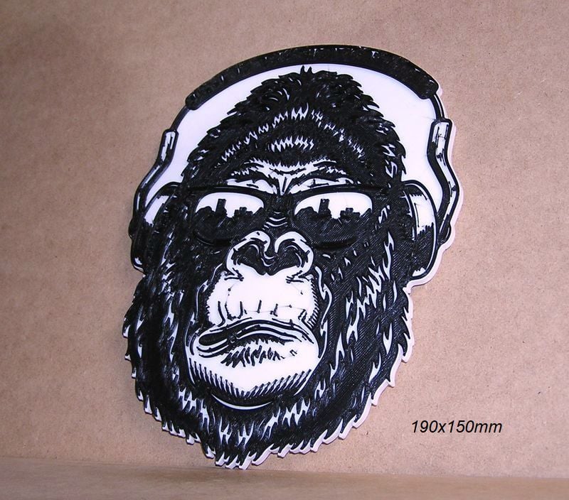 Poster, DJ gorilla logo, these STL and Gcode files have been created to be printed in various colors with any FDM type printer. The color changes have been made with the Elegoo Neptune 3 Pro printer, but they can be printed on any printer.