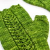 Techniques: cast on (long tail); bind off (JSSBO, standard); knitting in the round; lace; cables; picking up stitches