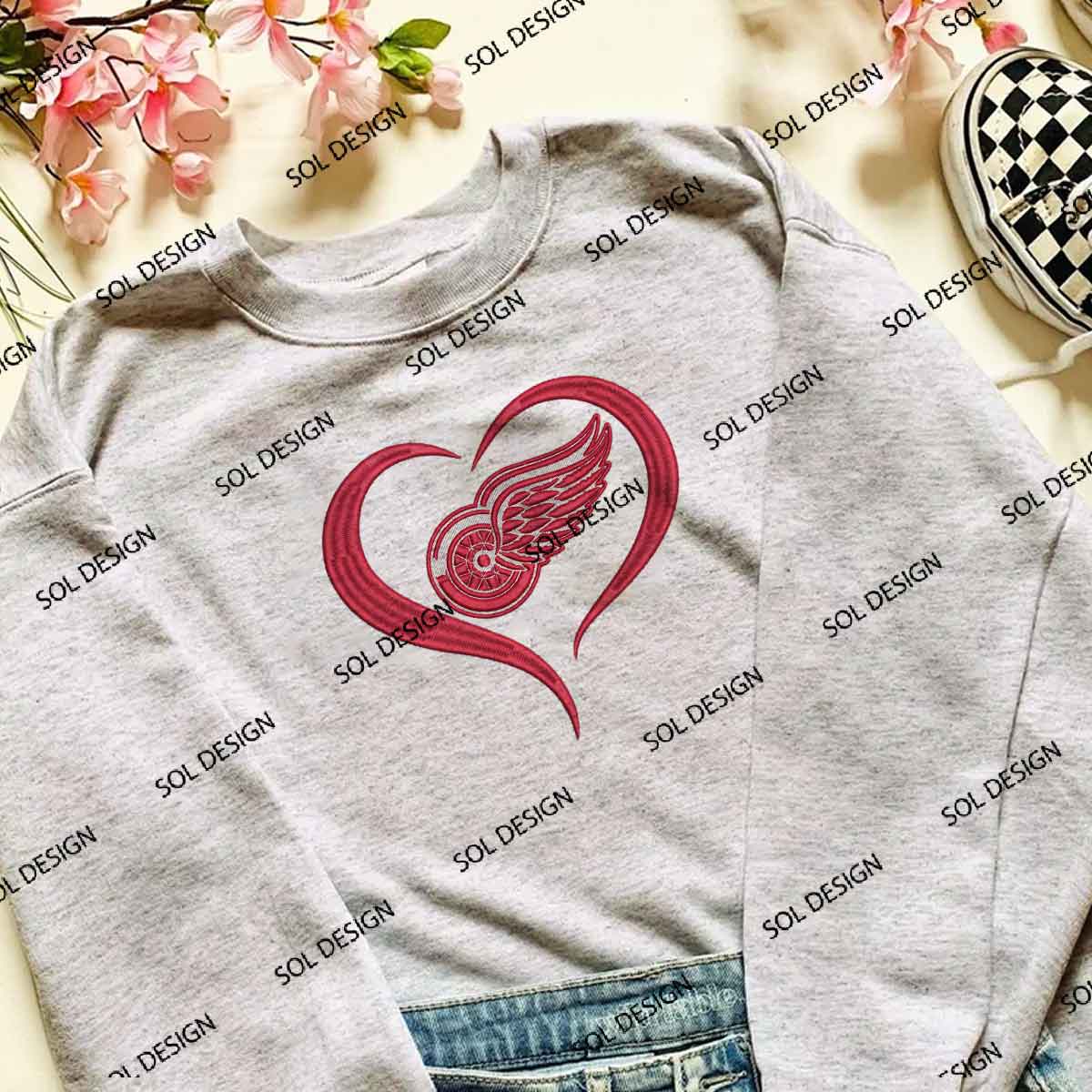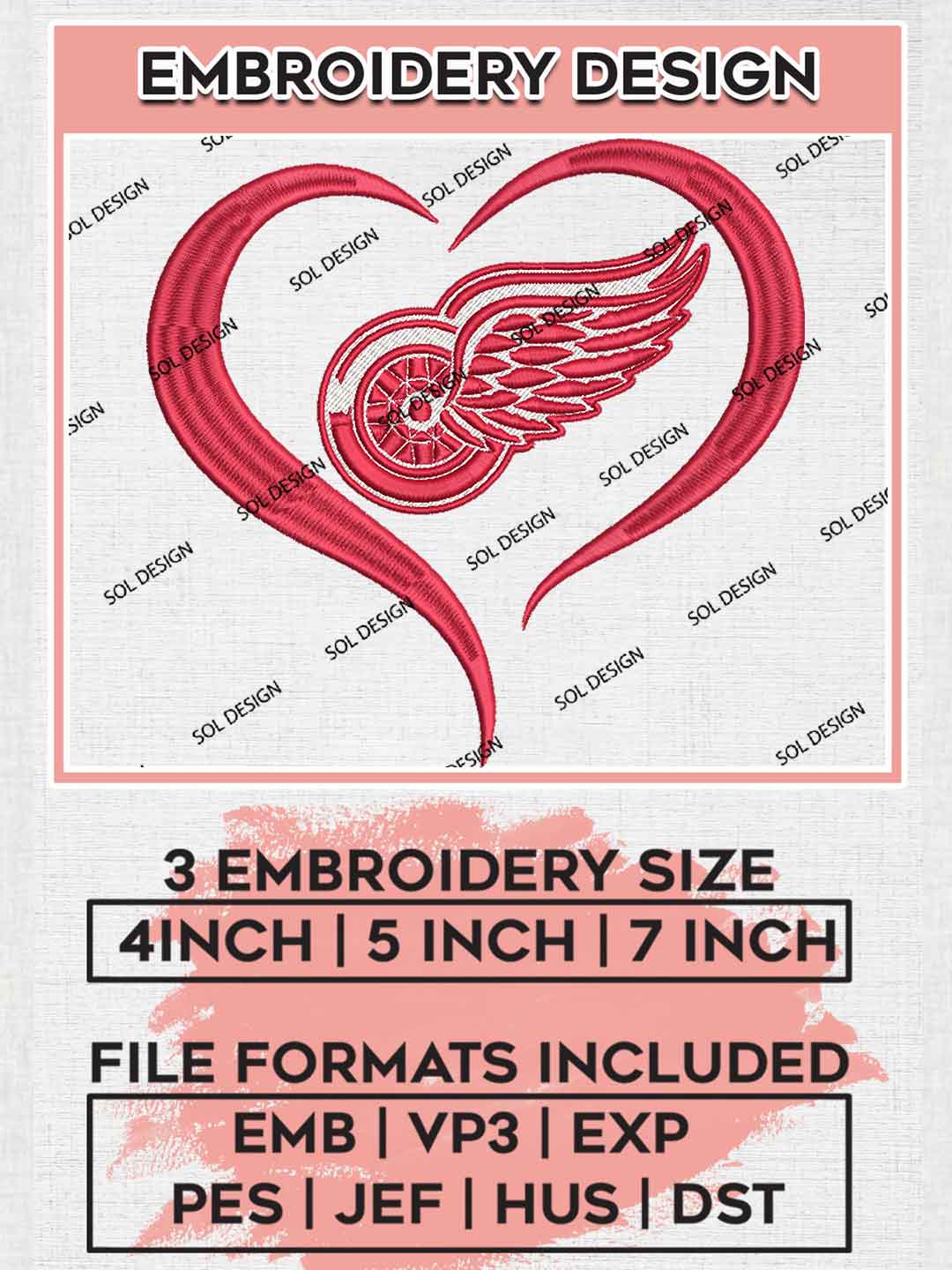 Detroit Red Wings Team Heart Logo Embroidery Designs, Detroit Red Wings Hockey Team Embroidery Files, NHL Red Wings Team Logo Embroidery, NHL Hockey Team Machine Embroidery Design, 3 sizes, Digital Download
