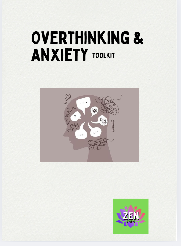 The Zen Studio Overthinking & Anxiety Toolkit is a printable, self-guided workbook designed to help you break free from mental loops, regulate emotional overwhelm, and reconnect with your sense of calm and clarity — at your own pace, from the comfort of home.
