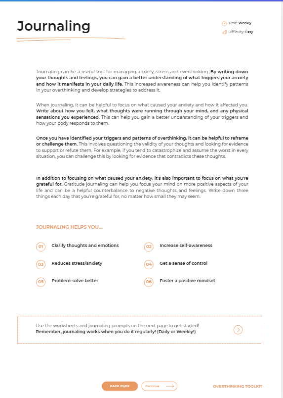 ✅ Guided journaling prompts to unpack overthinking