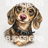 Happy Dachshund Art, Cute Dog Art Digital PNG Download, Watercolour Sausage Dog.