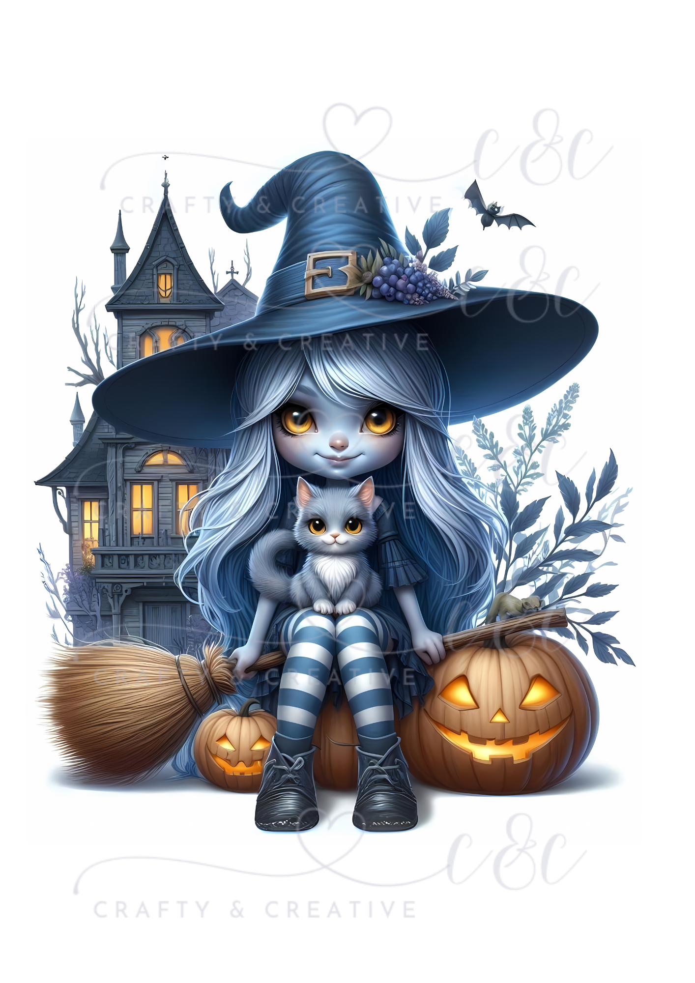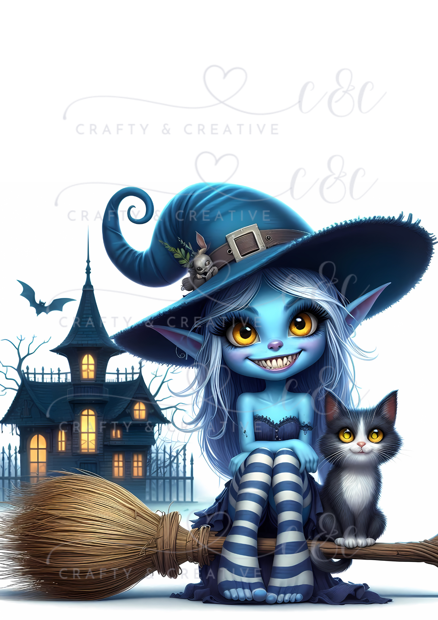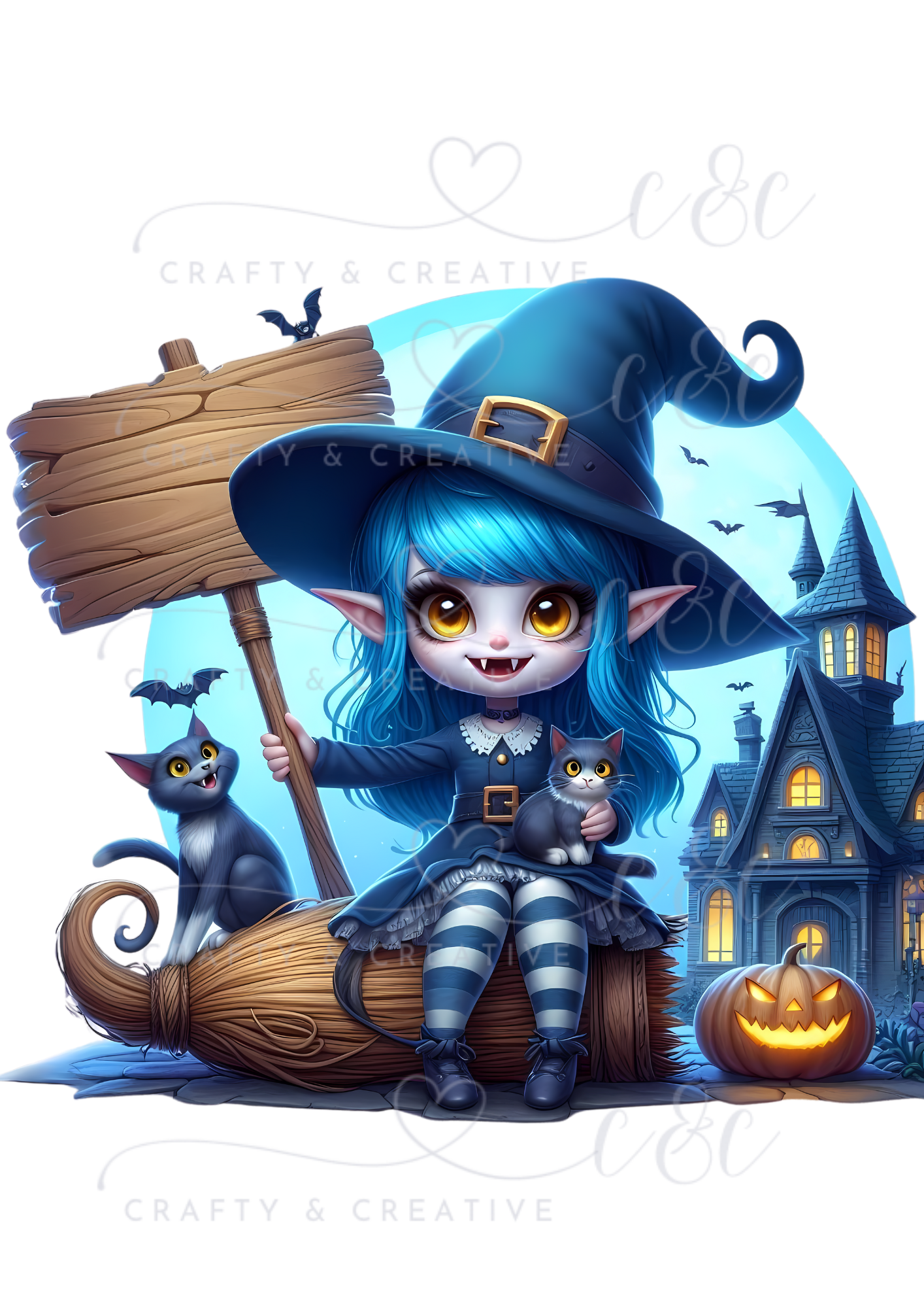 16 Fun Cute Colourful Witches with Pumpkins and Brooms. *Png images are not transparent*