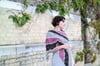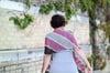 If you are working at a different gauge, weigh your yarn before and after working 1 stripe to determine how much yarn you will need for each stripe at that gauge. To change the width of the shawl you can add or subtract stitches in multiples of 16. You can also adjust the length of the shawl by working more or fewer stripes. The sample has a total of 13 wide stripes and 14 narrow stripes.