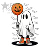 Cute Ghost with Pumpkin Balloon PNG – Halloween Sublimation Design, Spooky Cute Cartoon Style, 4000x6000 px, Transparent Background