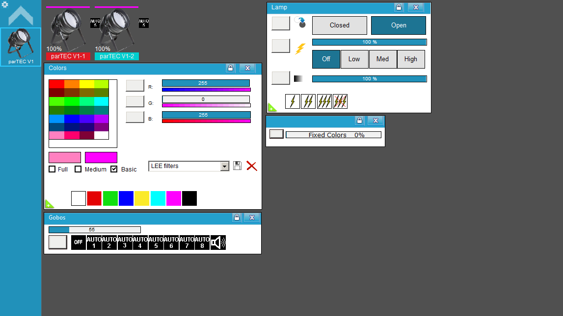 • Fade de colores lento, medio o rápido (sólo en V1).