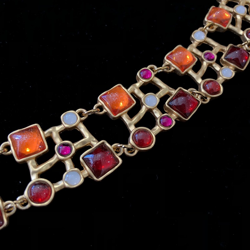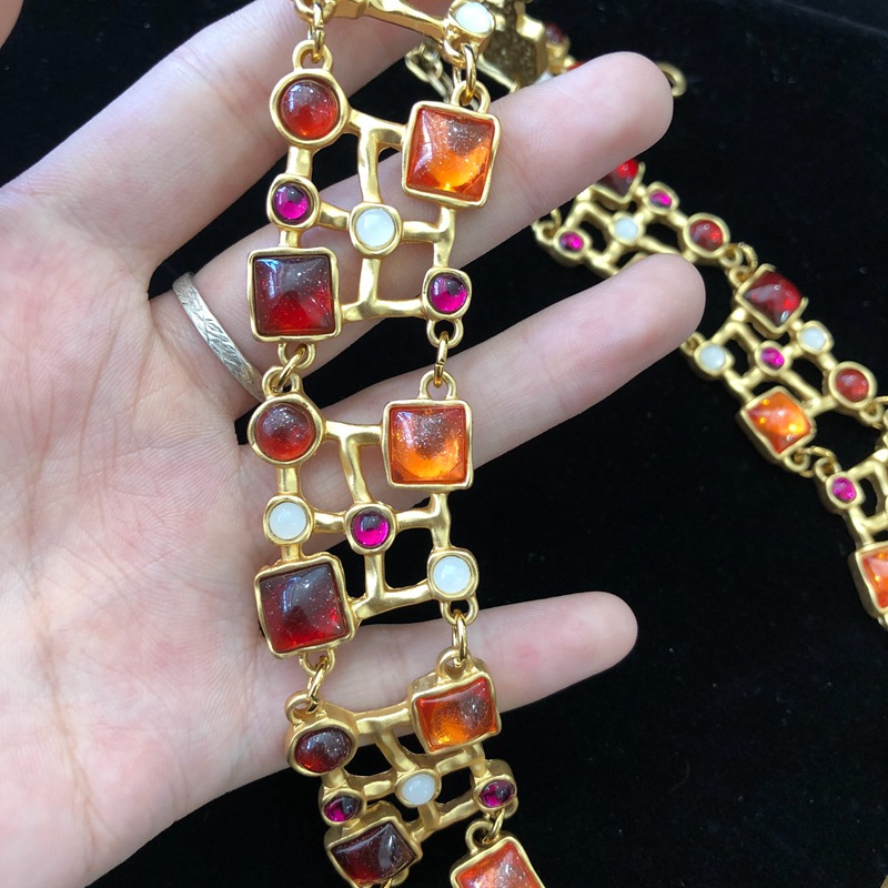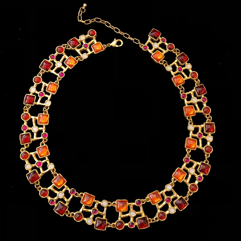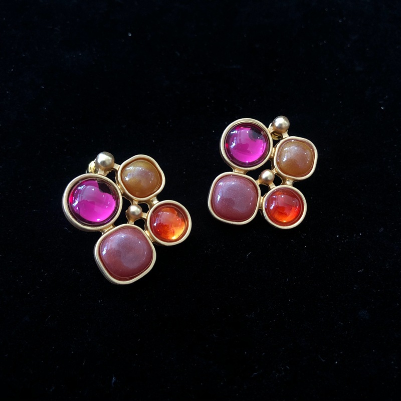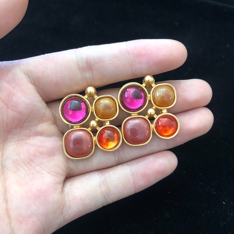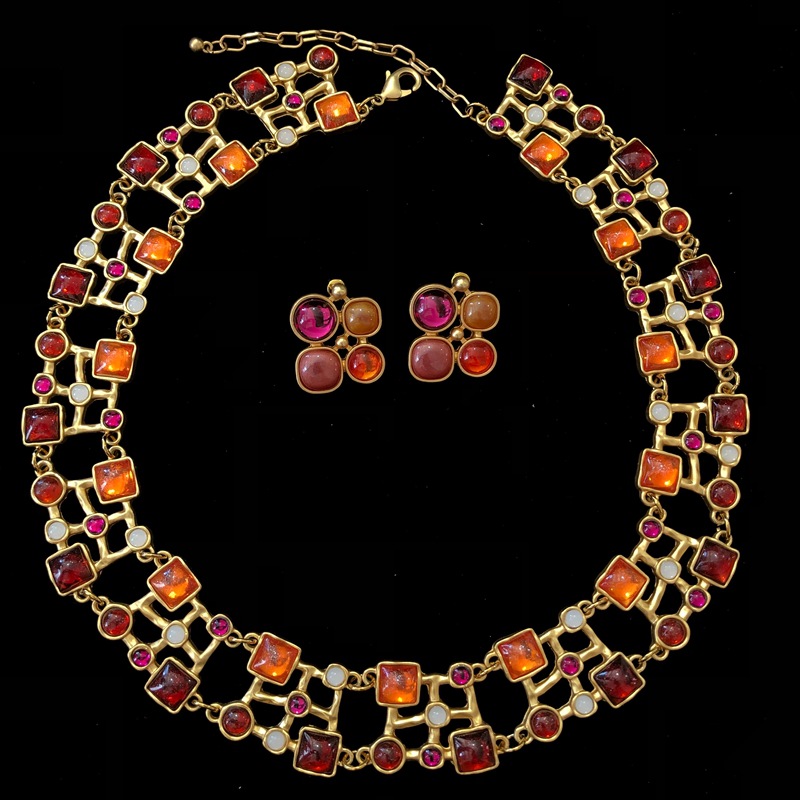 Vintage style real gold-plated orange red geometric stud earrings necklace set