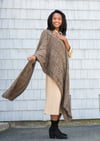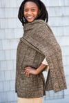 Drapey, cozy, elegantly simple: Rapport is comfort knitting with a dramatic result. The design is completely reversible and symmetrical, so it looks good however you wear it. The combination of Shibui Silk Cloud and Tosh Merino Light yields a fabric that is soft and warm, with a comforting weight and flickering colour. To make Rapport, you need to know how to knit, purl, and slip stitches. That’s it. The pattern includes instructions for three widths; the length is easily adjustable to suit your tastes. The sample shown is the largest size and is modeled by Josephine Ankarah, who is 5 ft 7 in/ 170cm tall.