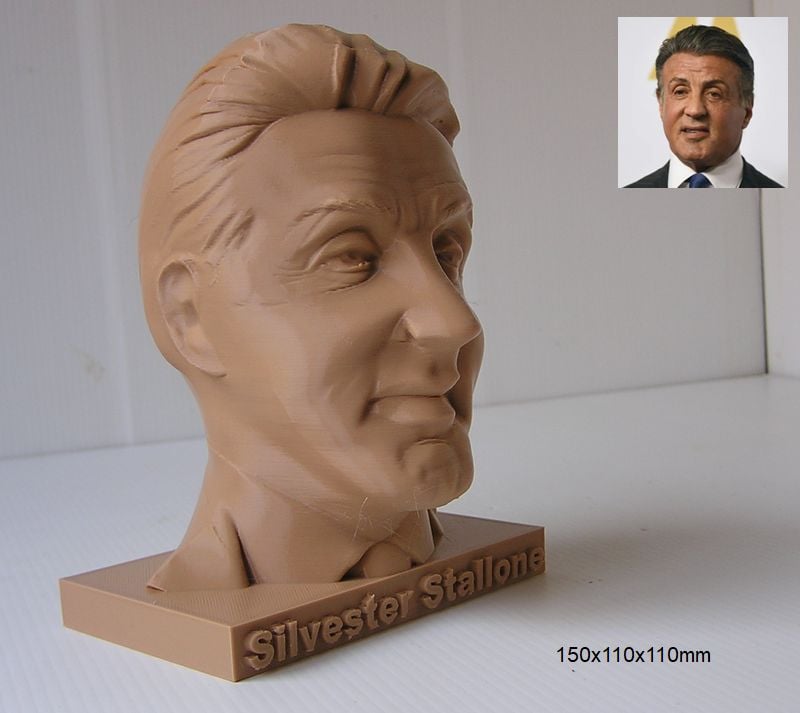 Bust statue of Silvester Stallone, these STL and Gcode files have been created to be printed in various colors with any FDM type printer. The color changes have been made with the Elegoo Neptune 3 Pro printer, but they can be printed on any printer.