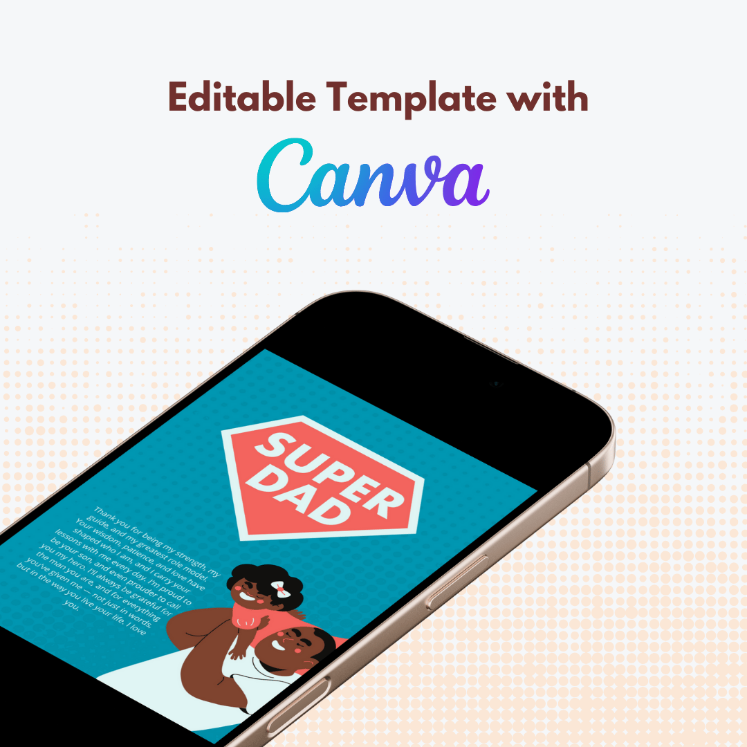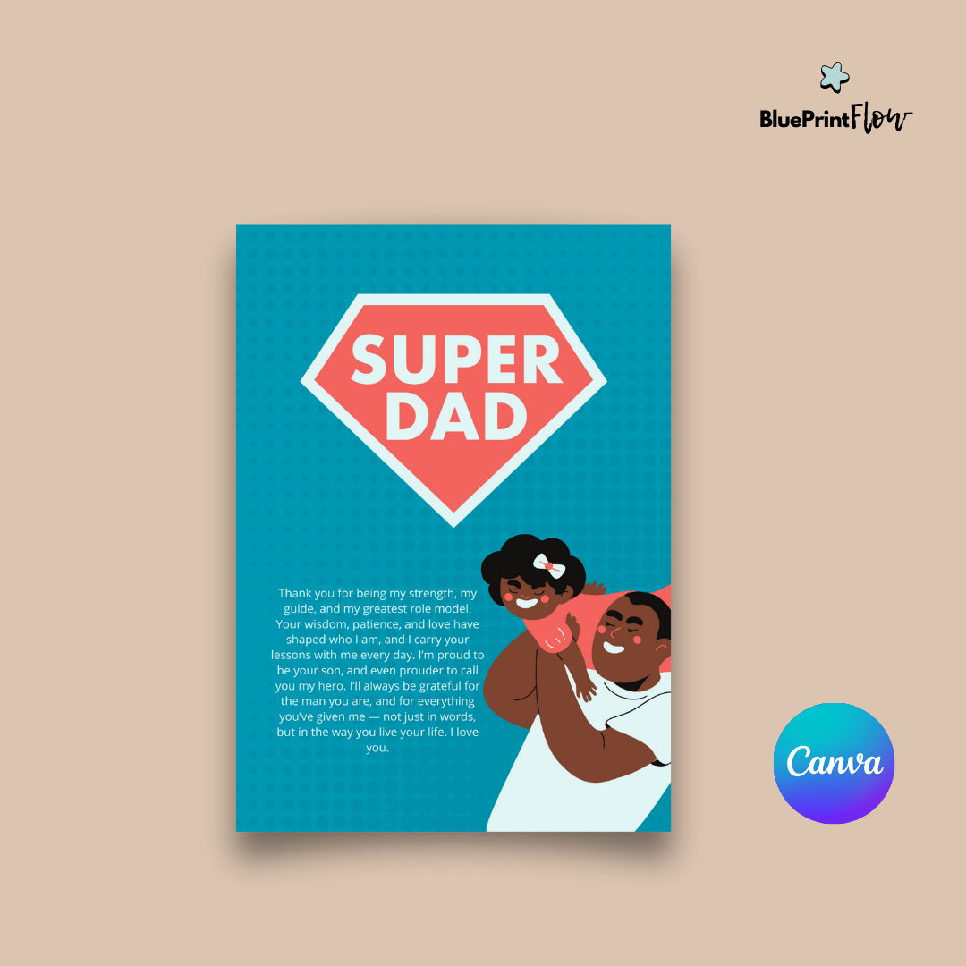 This Canva Template is designed to be both simple with Canva and visually impressive. Perfect for anyone looking to surprise their dad with a gift that comes from the heart. You don’t need design skills—just open it in Canva, edit the message, and it’s ready to download or print.