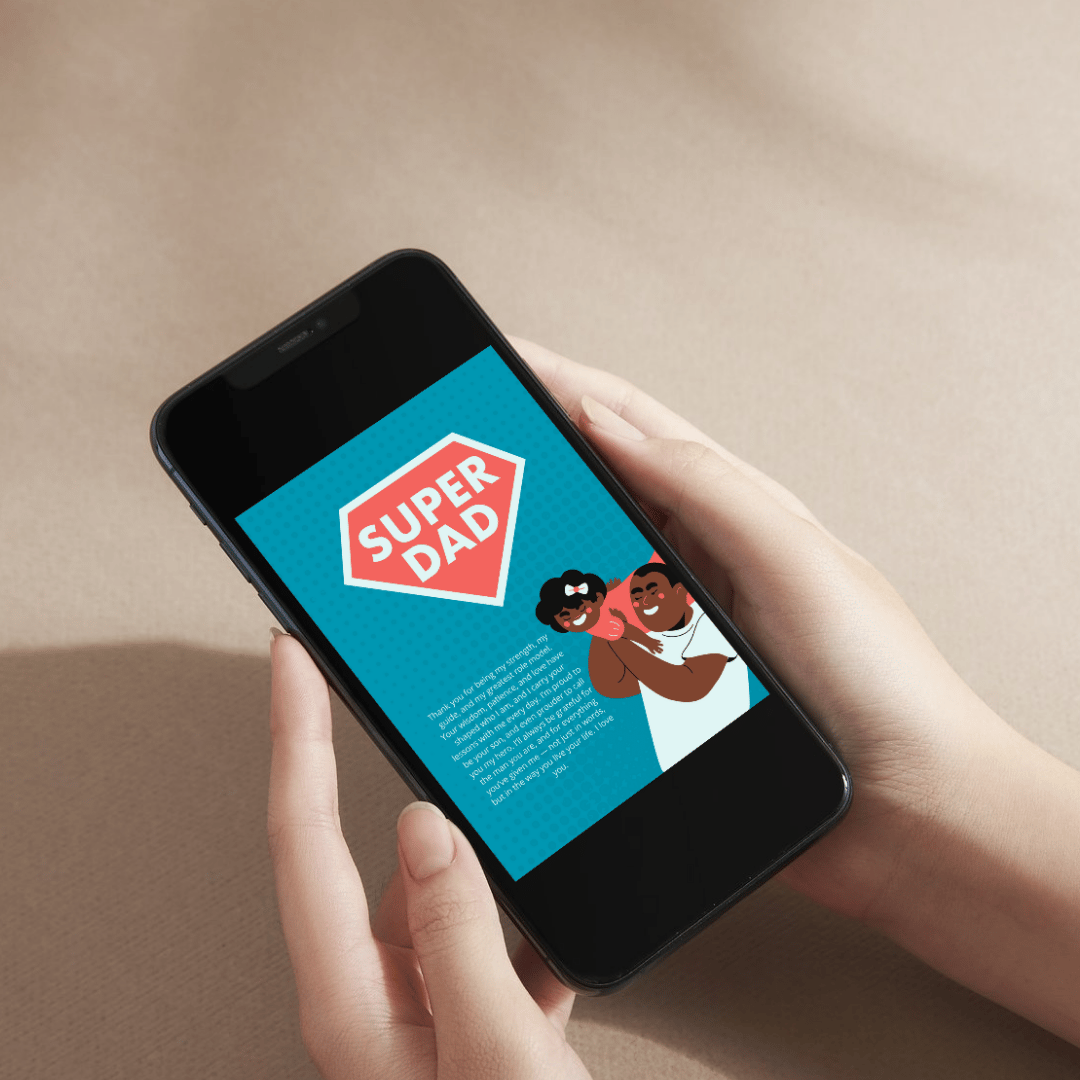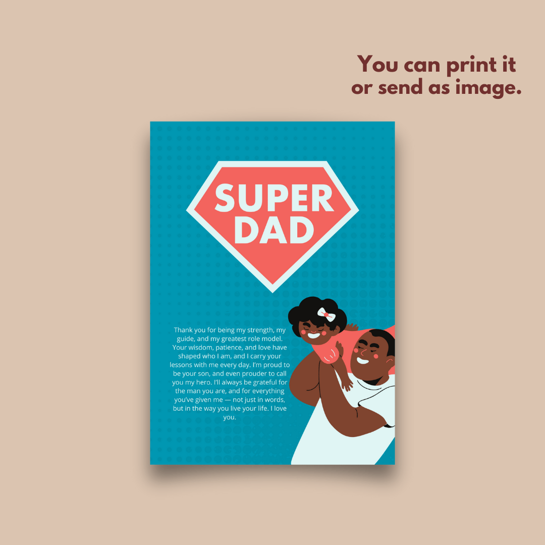 Make this Father’s Day extra special with our Super Dad Father's Day Card Canva Template Design.