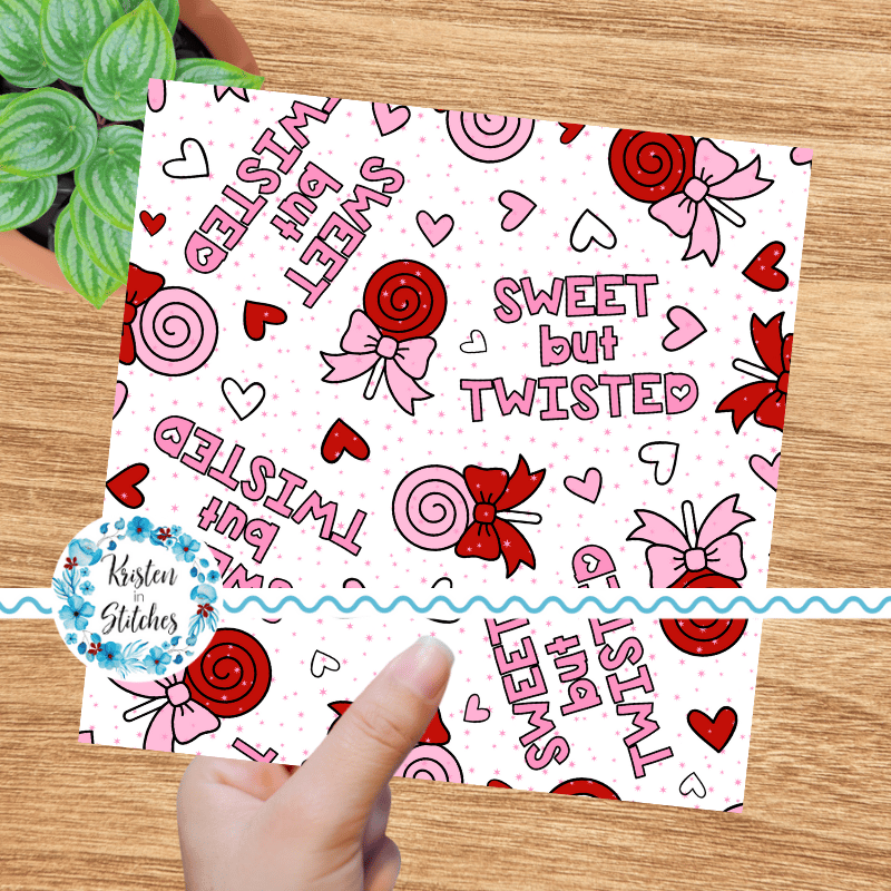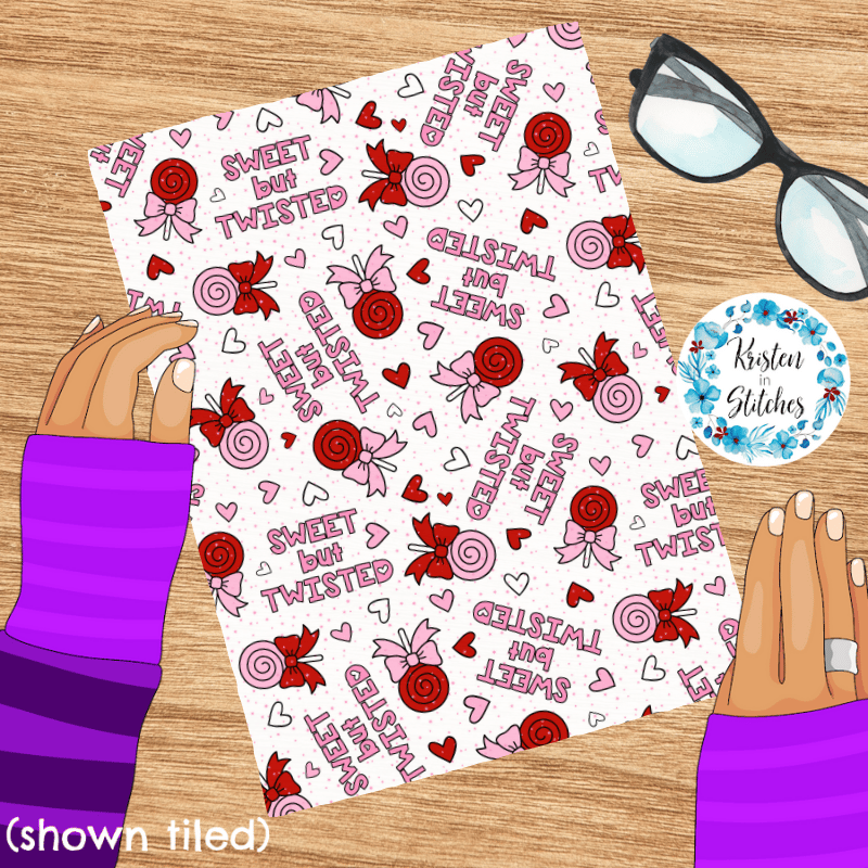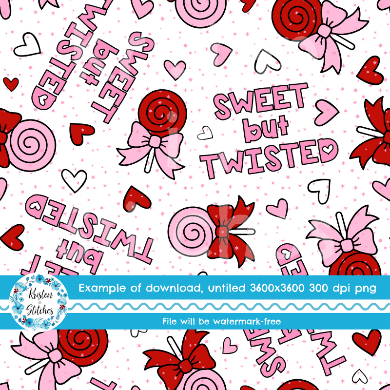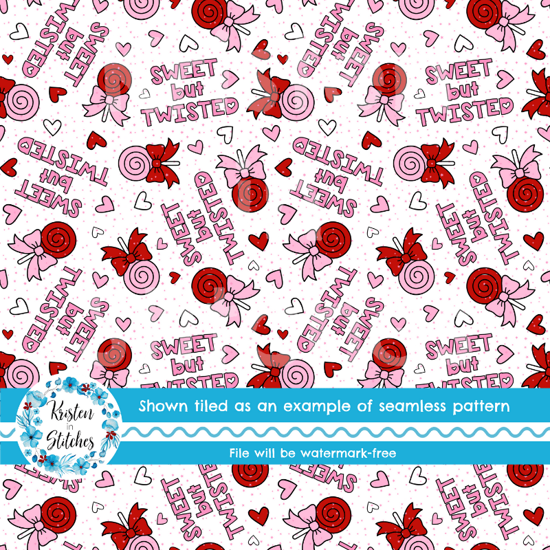 Sweet But Twisted Seamless Pattern, Valentine Lollipops Bows and Hearts