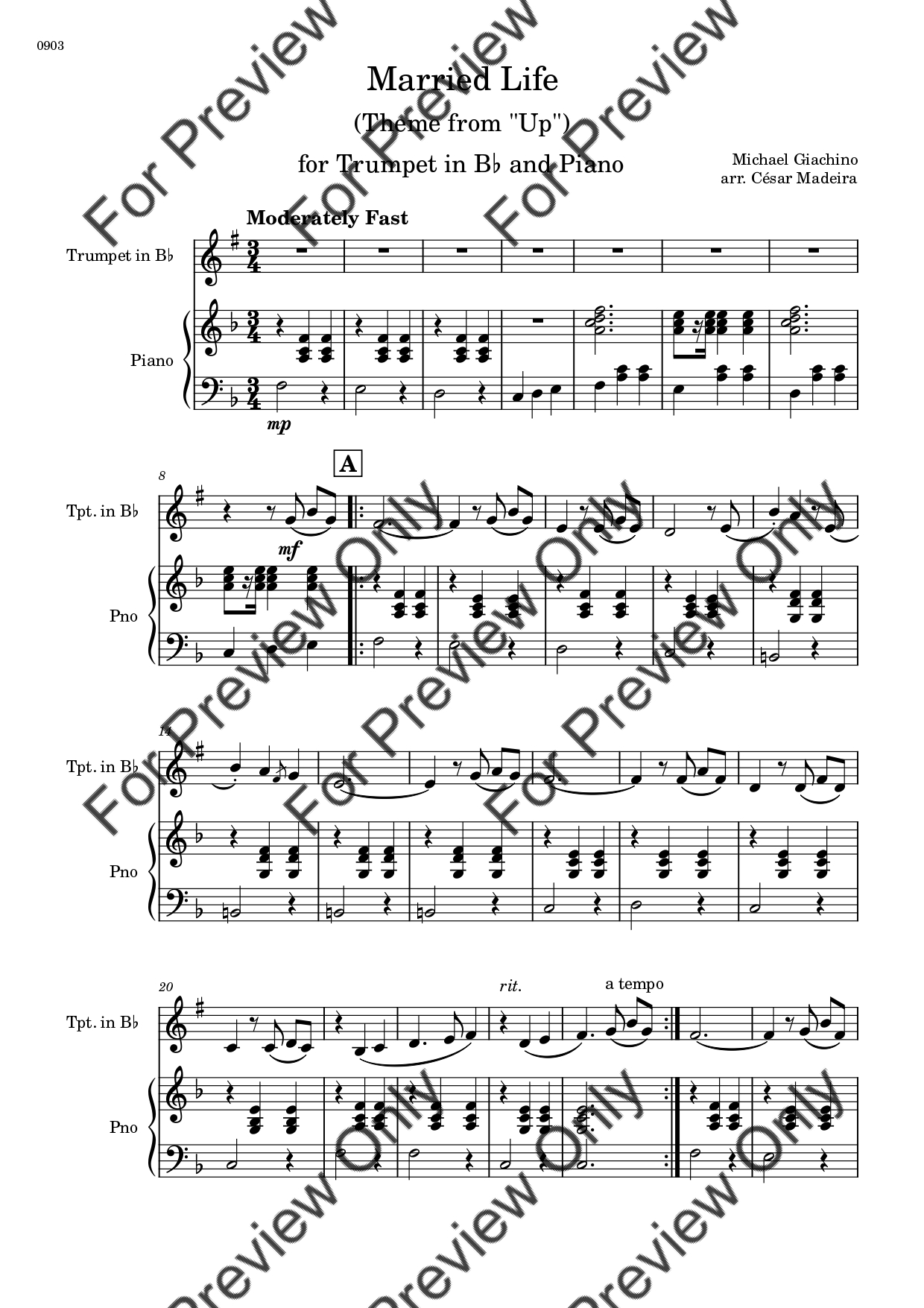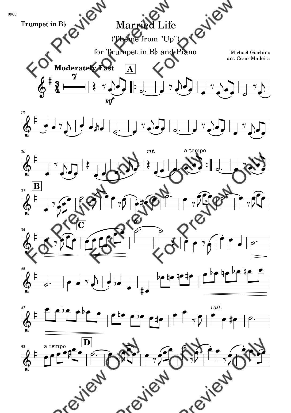 Married Life (from UP) by Michael Giacchino. Arrangement for Bb Trumpet and Piano. With Full Score and Individual Parts. Have fun!