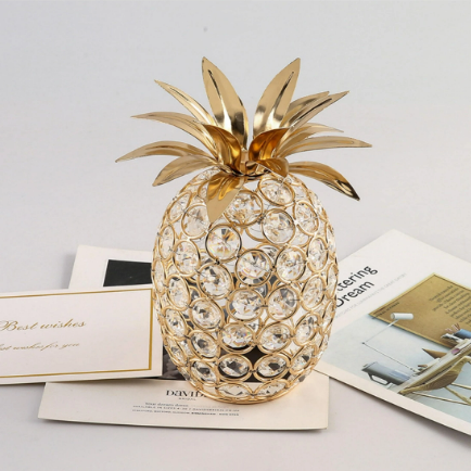 Add a touch of elegance to your home décor with this beautiful Gold Crystal Pineapple Ornament. Made of high-quality glass, this artificial fruit figurine is a perfect decorative accessory for any room. The intricate design and exquisite craftsmanship make this piece a must-have for collectors of fine decorative objects. The stunning combination of crystal, pineapple, and glass makes this ornament a unique and stylish addition to any home. The intricate details and vibrant colors of this figurine ensure that this is a statement piece that will be admired by all who see it. Whether you're looking to add some charm to your living room, kitchen, or dining room, this Crystal Pineapple Ornament is the perfect choice.