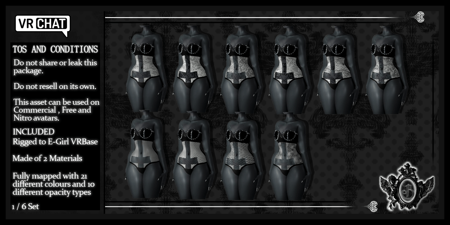 - Bodysuit contains 2 materials , 21 Colours and 10 Opacity options
