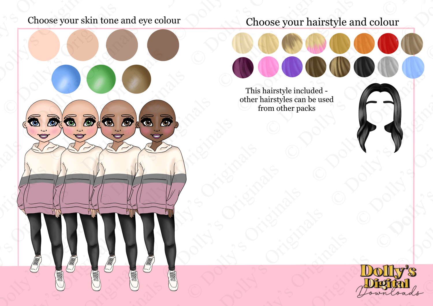 Instant digital download of our Blake Colour Block Hoody Doll Character Bundle PNG (28 PNG’s)